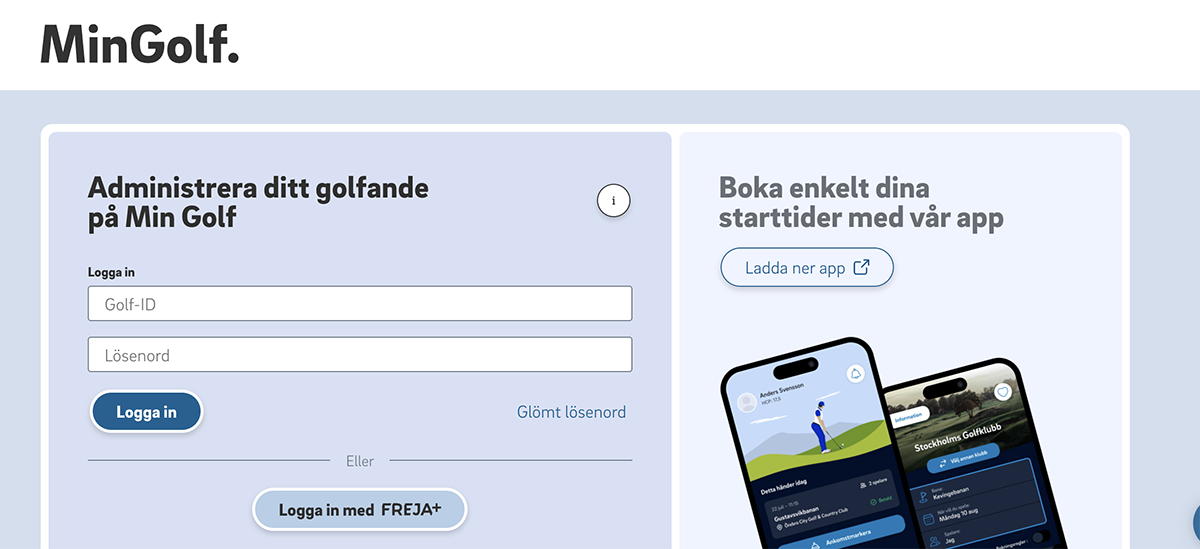 1. Om du inte uppdaterar ditt lösenord efter uppdateringen den 25 november kommer du inte kunna logga in i Min Golf med Golf-ID och lösenord. Du kommer dock fortfarande kunna logga in med Freja+.
